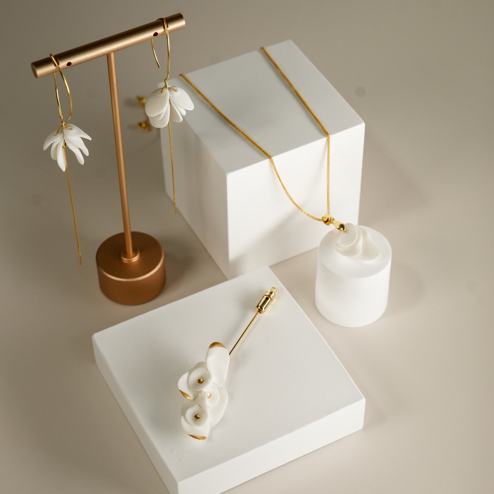 Handcrafted Magnolia White Ceramic Necklace